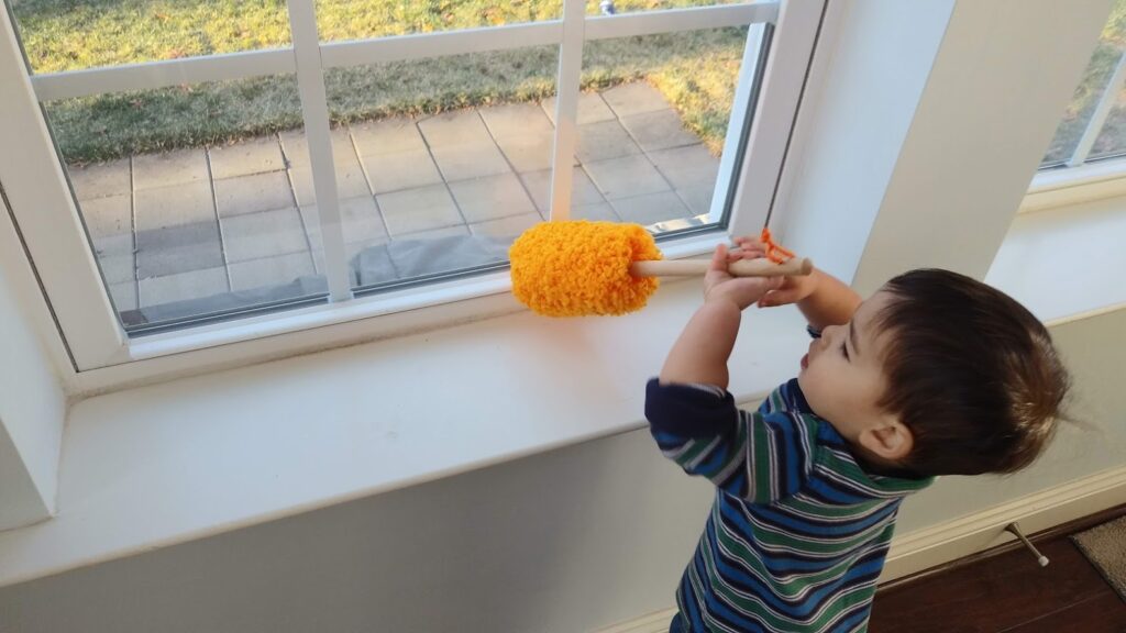 In between all of these scheduled moments, we create new learning opportunities out of day-to-day activities, such as folding the laundry, making a meal together, washing hands, and so on. One of the things that has really struck me was reading that just about anything is a teachable moment for this age. And we have seen it with our son – in just over a month, he has learned so many new words and gestures – not because we are practicing flashcards as we were in the beginning, but because we are conversing with him throughout the day about everything we are doing ourselves. Like in a Montessori classroom, we’ve been able to slow down and include him in more of our day-to-day activities, giving him some ownership.