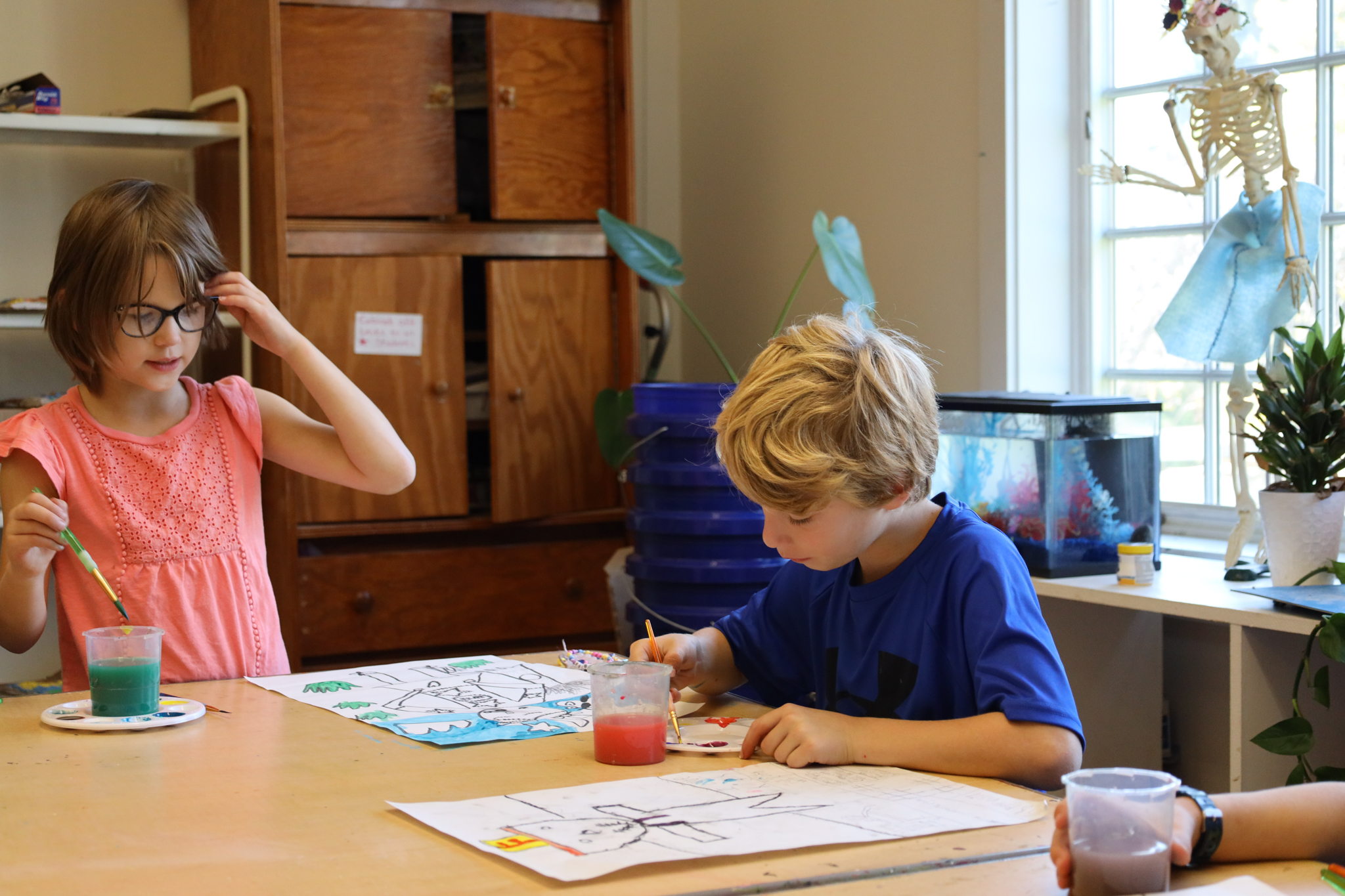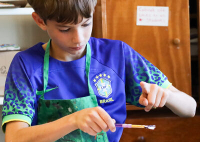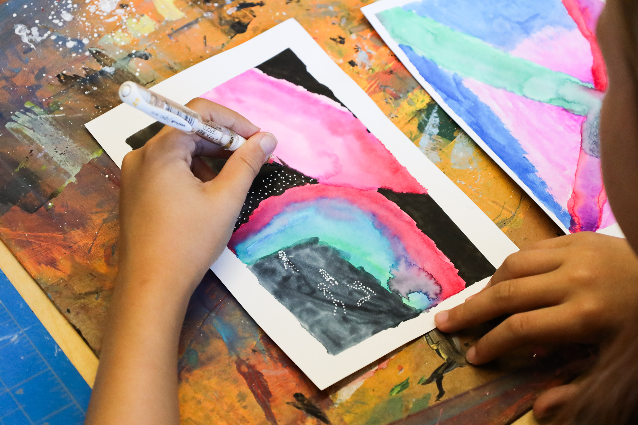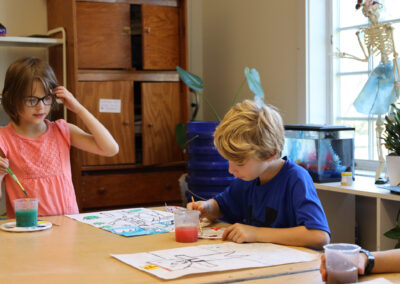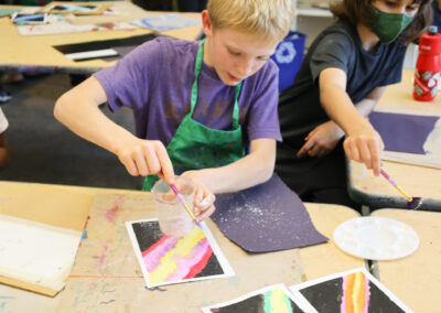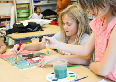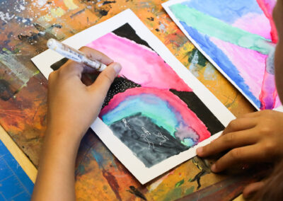 Focuses on the process. “I notice that you sketched first and then painted. Tell me more about that.”