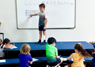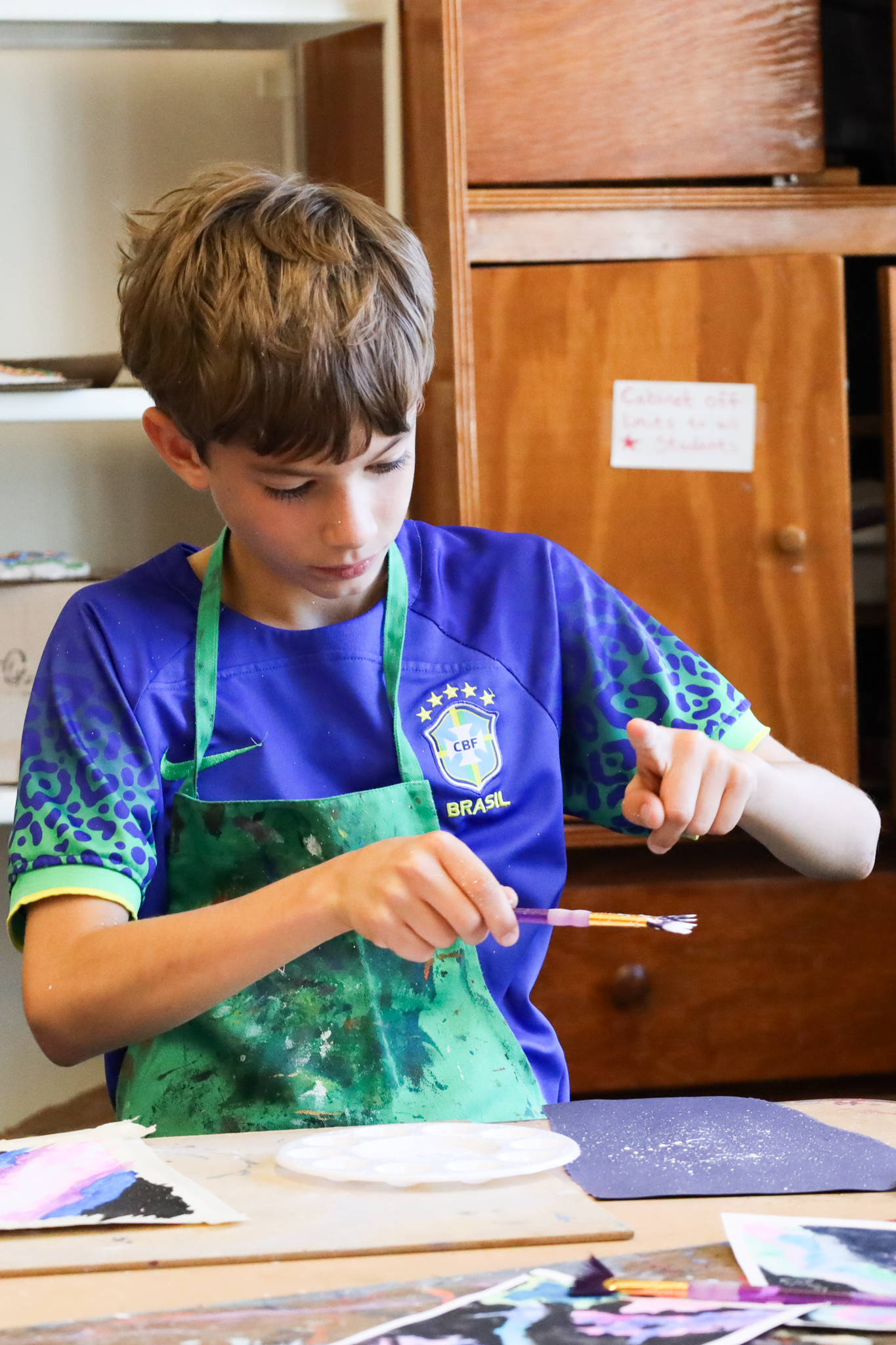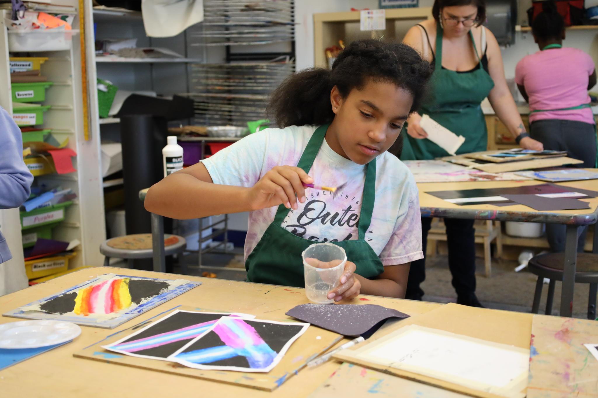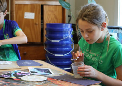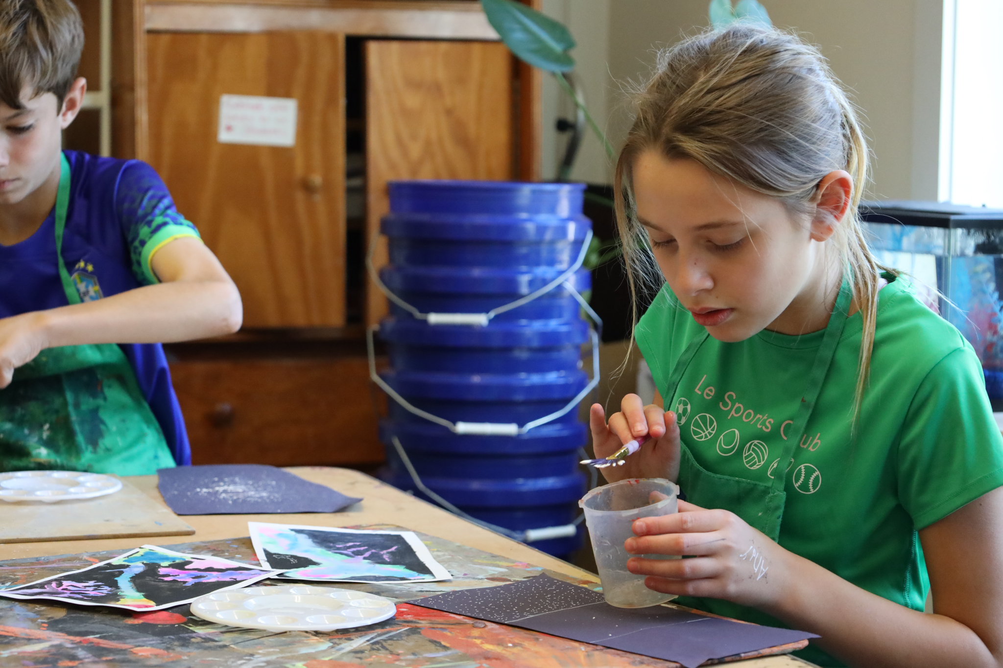 Focuses on the process. “I notice that you sketched first and then painted. Tell me more about that.”