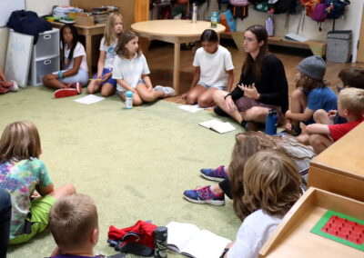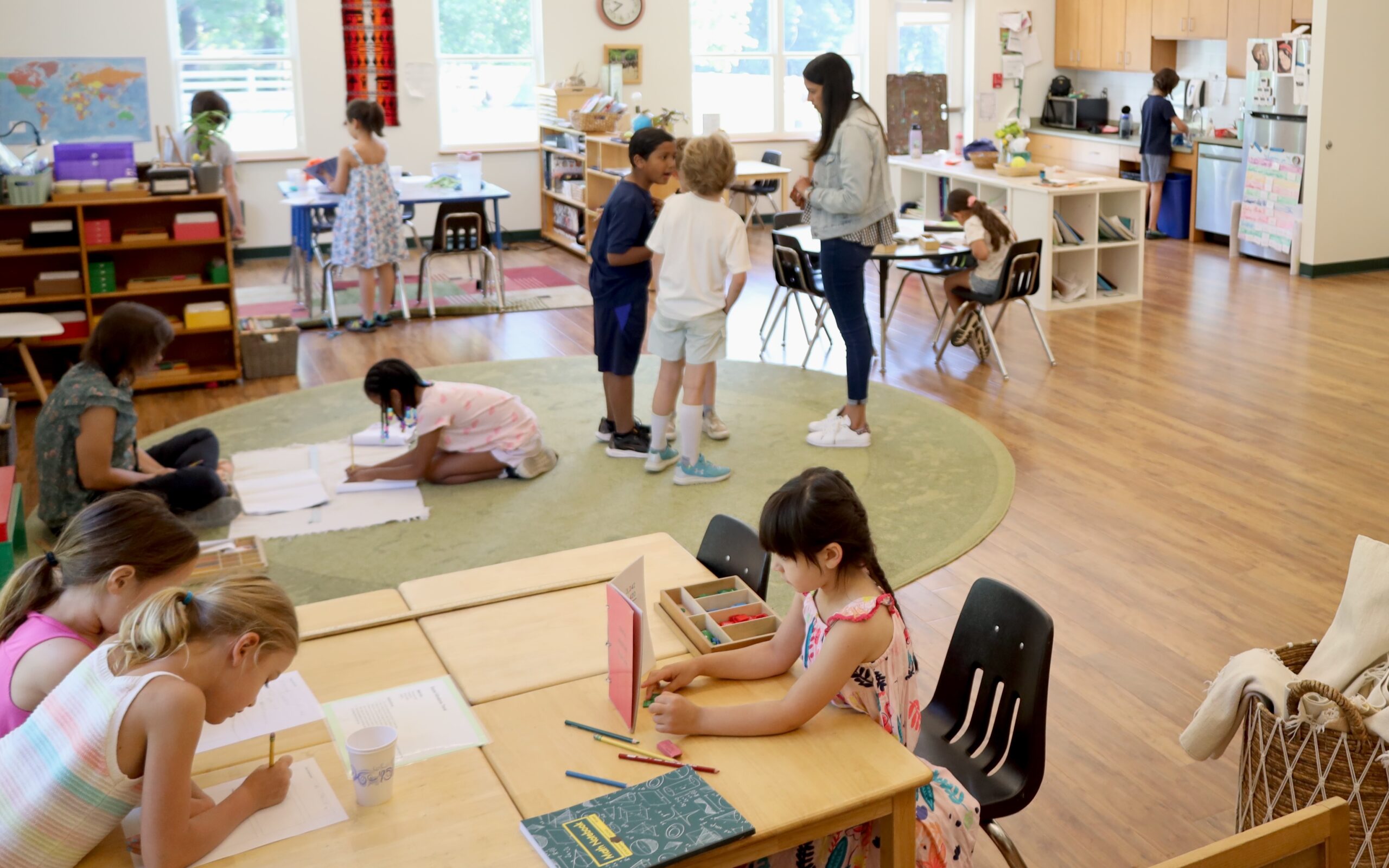 Montessori classrooms are unique because they include a three-year age range of students. This allows students and their families to build a close relationship with the same Guide over three years. It also means that the classroom enjoys consistency from year to year, with only a third of the group matriculating and a third of the group entering new each year. Older students often serve as role models for younger students, building their confidence and leadership skills. Lower Elementary classrooms are for 6-9 year olds (the equivalent of 1st, 2nd, and 3rd grade) and Upper Elementary classrooms are for 9-12 years olds (the equivalent of 4th, 5th, and 6th grade).