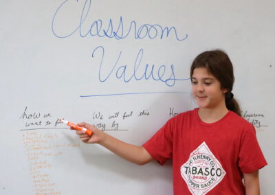 Many traditional classrooms are adult-centered, with the teacher controlling the classroom and enforcing discipline with the use of rules, rewards and punishments. Montessori classrooms are child-centered. The students agree on a set of community values and all are responsible for upholding their shared agreements. Additional expectations for behavior are taught through Grace and Courtesy lessons. The focus is on the whole child, so lessons that support social and emotional development are considered as important as academic lessons. At the Elementary level, students take even more ownership of their community, using community meetings to communicate concerns and solve problems collaboratively.