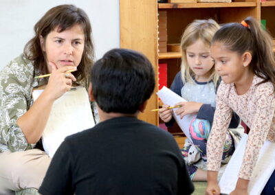 In most traditional schools, a teacher gives direct instruction to the whole class and to groups of students, based on a predetermined curriculum. Children are forced to move at the pace of the group, regardless of whether they already understand the material or need more time to fully absorb it. In Montessori classrooms, lessons are given to individuals and small groups as they are ready for them, regardless of age or grade. In addition, students independently use self-teaching materials and learn from each other. Because students work at their own pace in all different subjects, students are not set up to compete with one another. Instead, students support and collaborate with one another. At the Elementary level there is a great deal of collaborative work. Students learn to negotiate, plan, delegate, advocate, and problem solve through these projects.