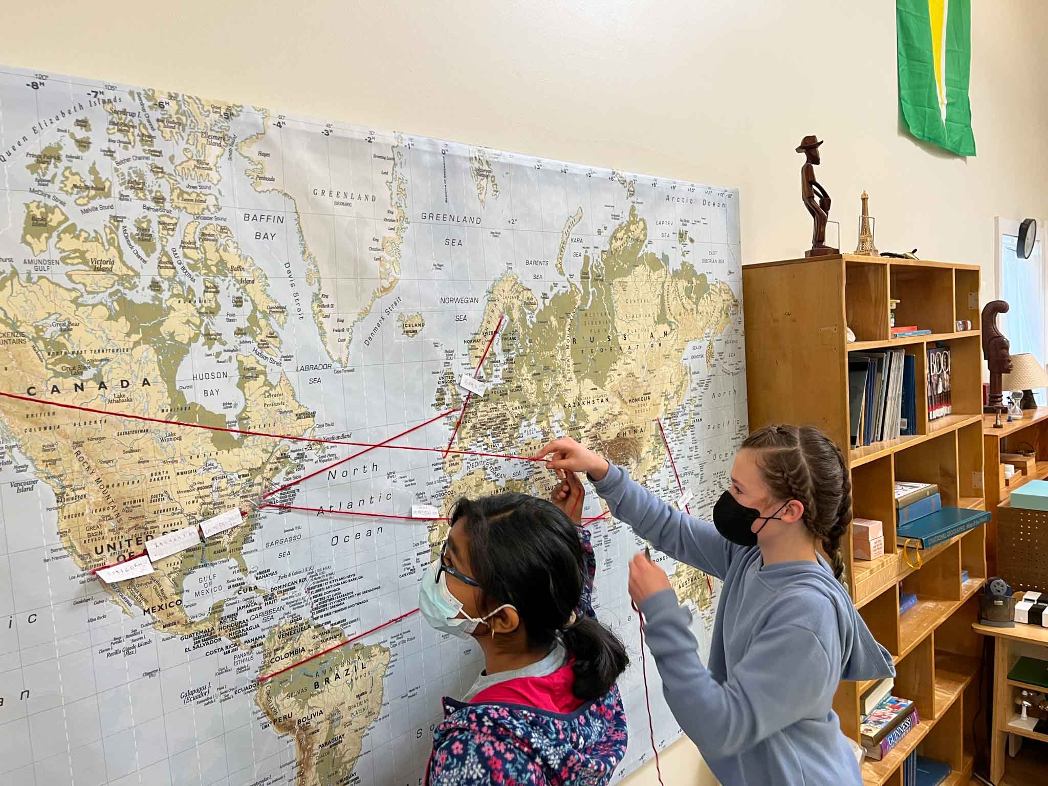 Maria Montessori saw the education of young children as the human race’s opportunity to recreate itself in a way that would eliminate war. As with most things, Dr. Montessori did not think that meant children needed to be lectured on the subject, but rather that they needed to be given an opportunity to discover peace for themselves. From a very early age, our students learn to think globally about the human race and its place in the entire system of our planet. As they get older and their thinking becomes more abstract, they learn more about the ways that different cultures have coexisted with the geography and biology of their parts of the world to meet the basic needs that all humans have in common.