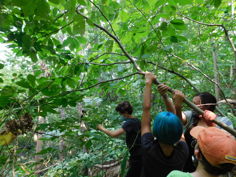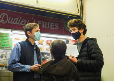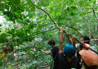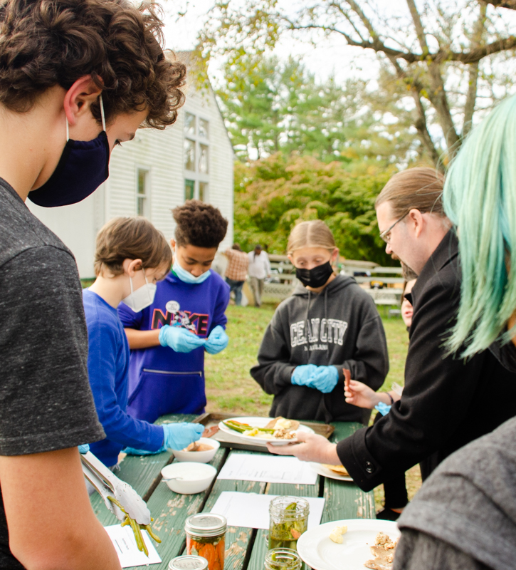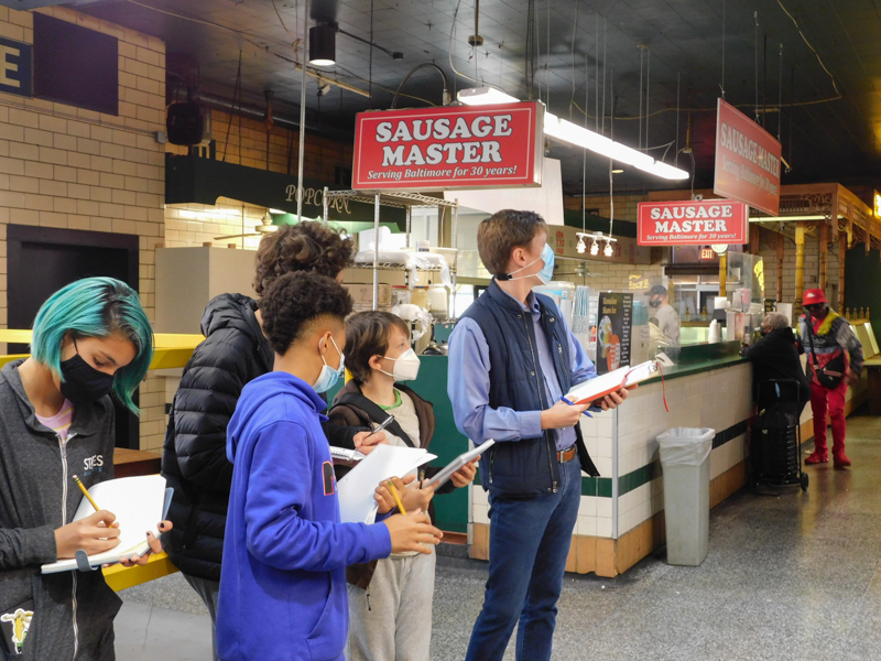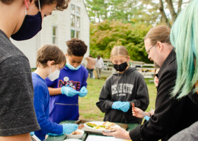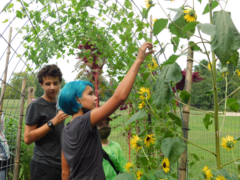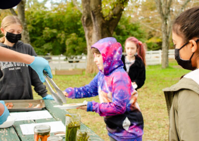 An Adolescent student shows one of their chicks to a Children’s House classroom, engaging in cross-level science work.