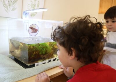 Students develop self-reflection and problem-solving skills, learning to assess their own work and progress. Starting in Elementary, students will meet with their Guide weekly, or more frequently if needed, to go over their work journals and talk about their successes and challenges. The Guide is there to help the children scaffold these skills throughout their time in the program.