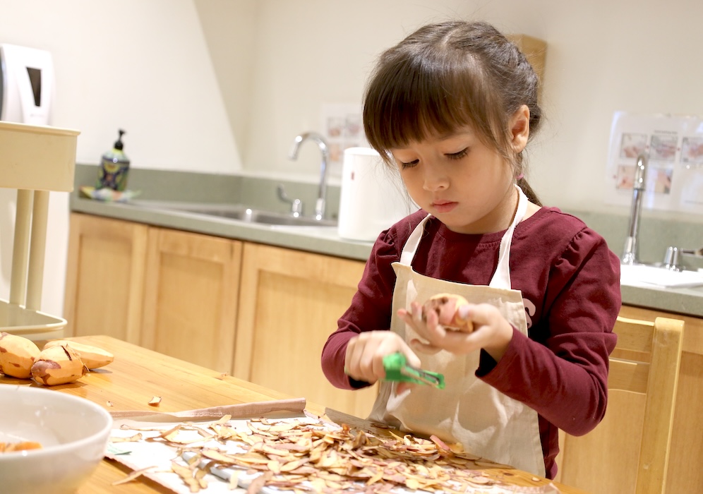 Our Toddler and Children’s House students find great joy in food preparation. You can extend this practice into the home by having your child help set the table and cook with you. Not only do they get involved and excited about cooking their own meals, but this work gives children practice with sequencing and helps strengthen their fine motor muscles that will later help with writing.