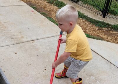 Children also participate in the clean-up process, including clearing the table, washing dishes, wiping down tables, and sweeping the floor. You see children collaborating and problem-solving during the process of setting up and cleaning up. Even cleaning up a spill or a broken dish is part of the learning!
