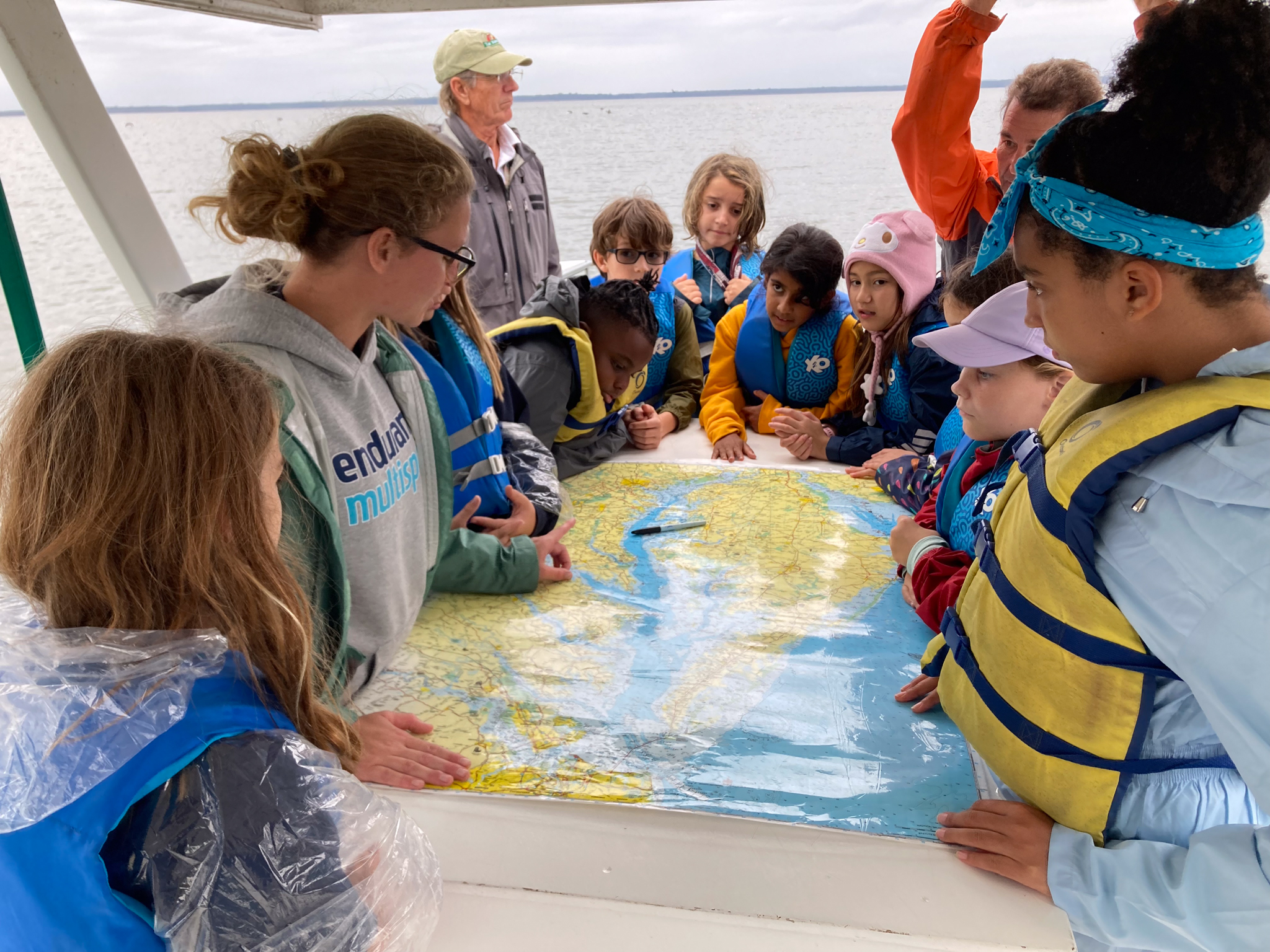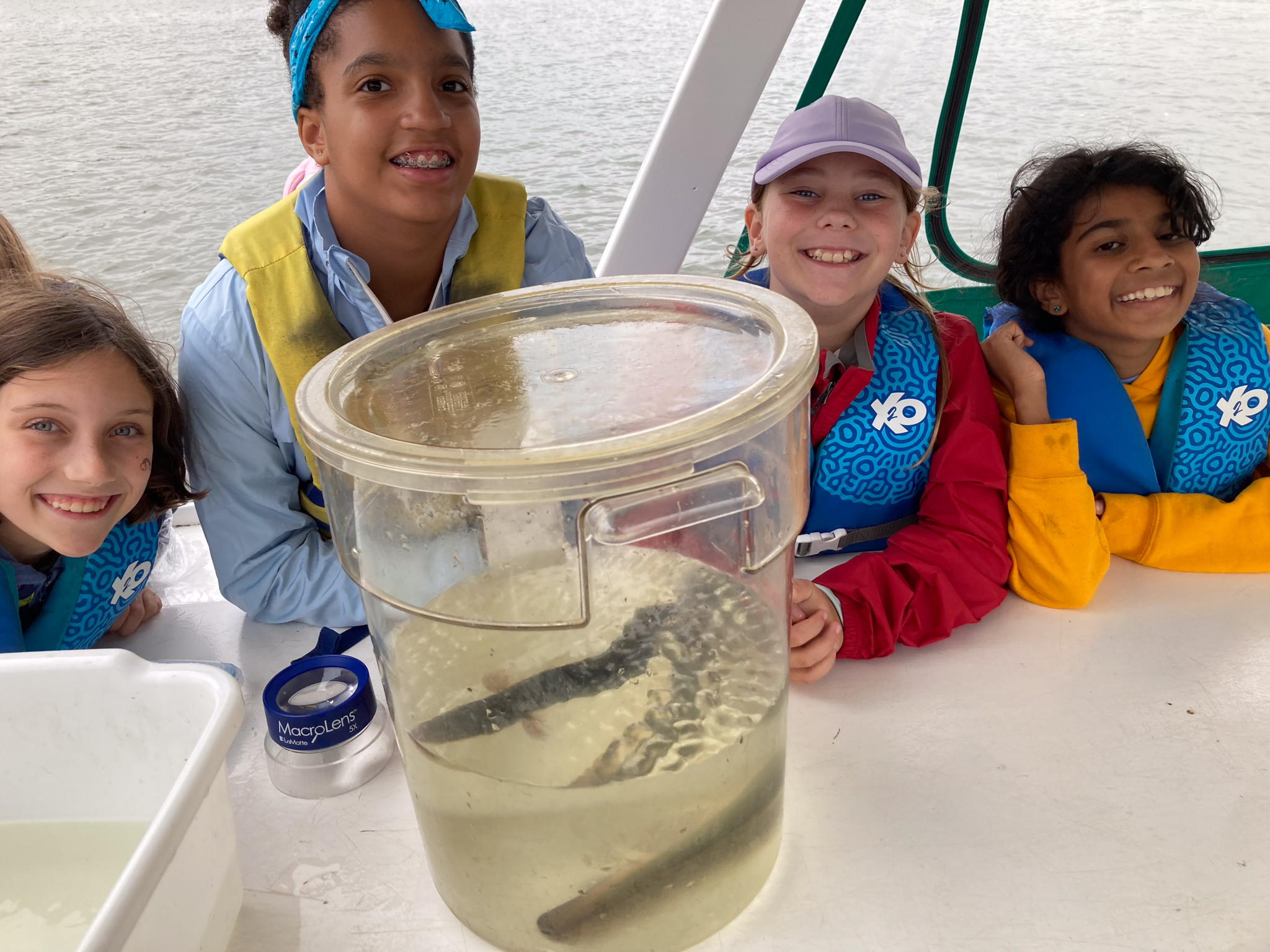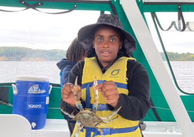 Elementary students worked on a small fishing boat and experienced firsthand the living creatures of the Chester River. They discussed the ecological value of an estuary like the bay. Groups collected aquatic animals including freshwater eel, blue crabs, and fish which they had a chance to touch. Students learned the local history of bay communities, the environmental challenges fishermen are now facing, and so much more.